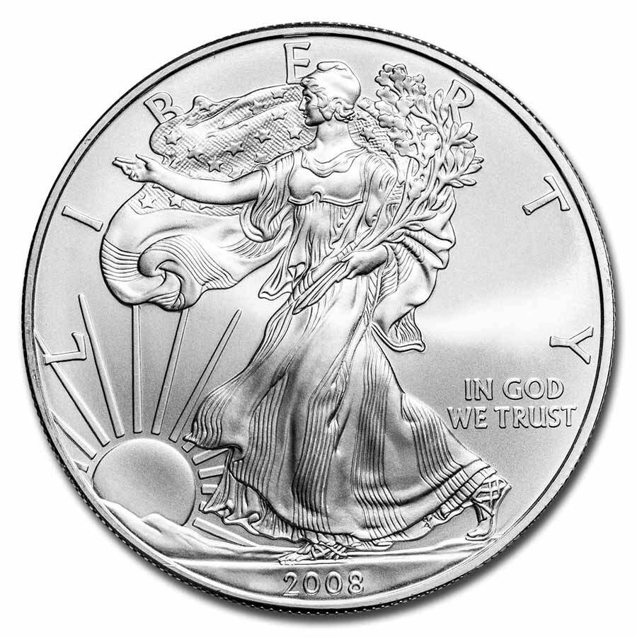 One of the most popular designs in American coinage, the Silver Eagle combines beauty with Silver bullion appeal. Add the 2008 Silver Eagle to your cart today!