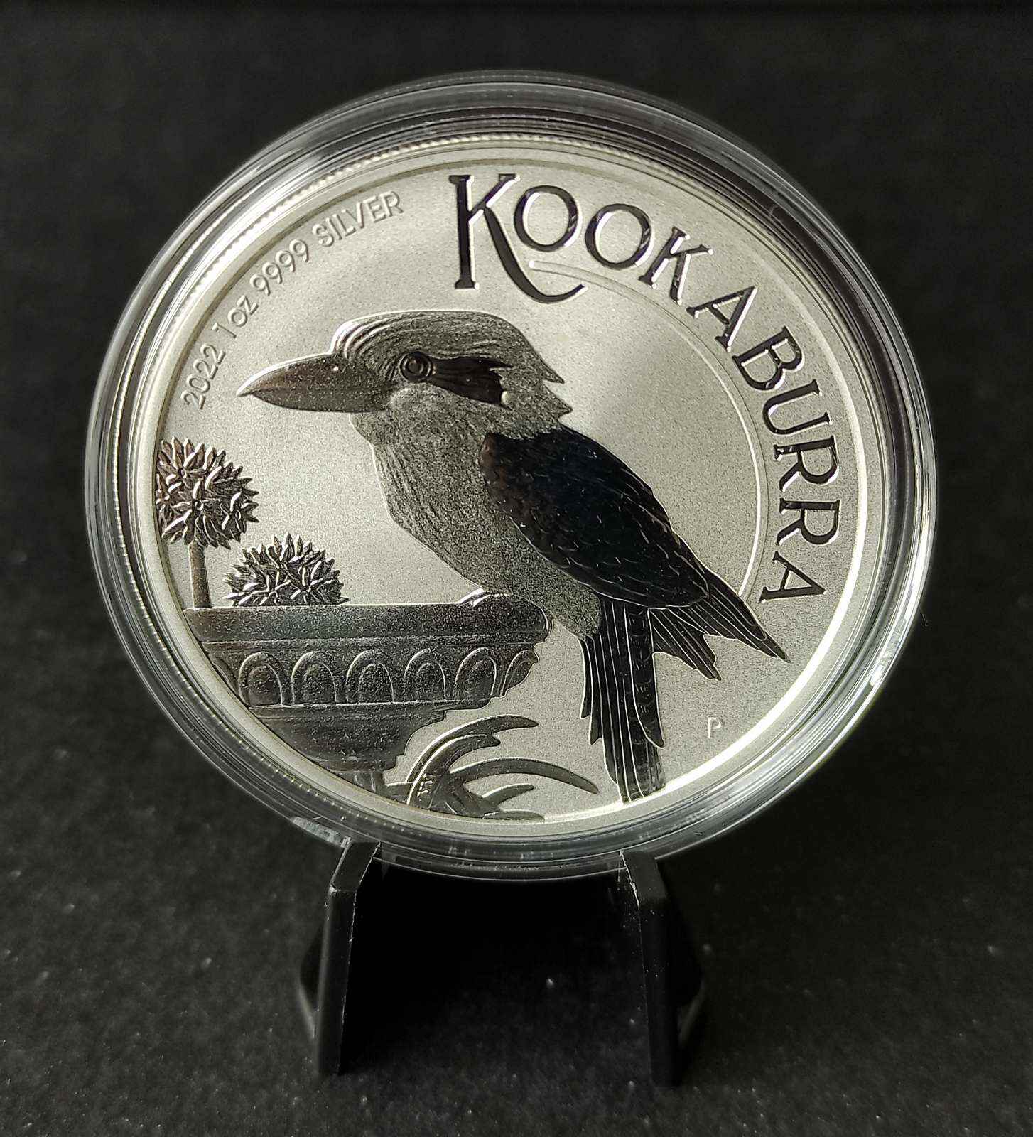 This 2022 Australian Kookaburra 1 oz Silver Bullion Coin comes in an individual protective Coin capsule
