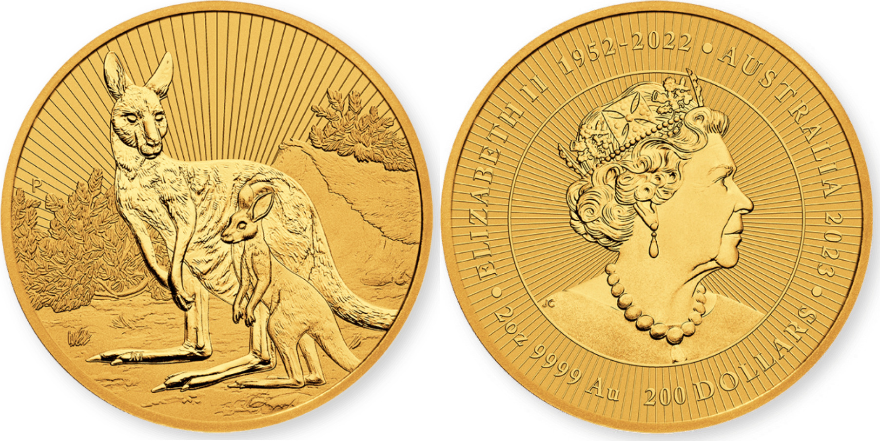 We are excited to release this 2oz gold bullion coin featuring a mother and baby kangaroo.