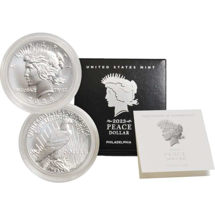This 2023 United States Mint Peace Silver Dollar has a low mintage of only 275,000 coins. Offered in Brilliant Uncirculated condition in original government packaging with a certificate of authenticity.