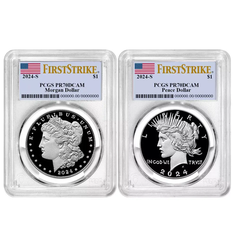 2024 Morgan & Peace Silver Dollar PCGS MS70 FS 2 Coin set 1set (2 coin)