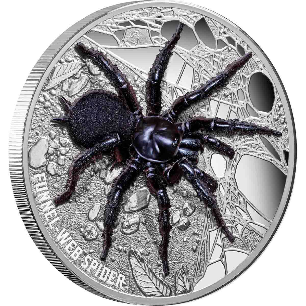 We won’t blame you for being hesitant to get too close to this numismatic wonder. The Ultra-High Relief, Proof quality design brings the funnel web spider to life in terrifying three-dimensional detail that does spectacular justice to its distinctive spinnerets, fangs and long legs! The realism is heightened by state-of-the-art Digital Colour minting, enhancing the glossy black/brown carapace that covers the front part of its huge body. Like the funnel web spider itself, this 65mm coin is very large, giving its subject plenty of space to roam. Official Niue legal tender, it’s enough to send collectors into a tailspin!