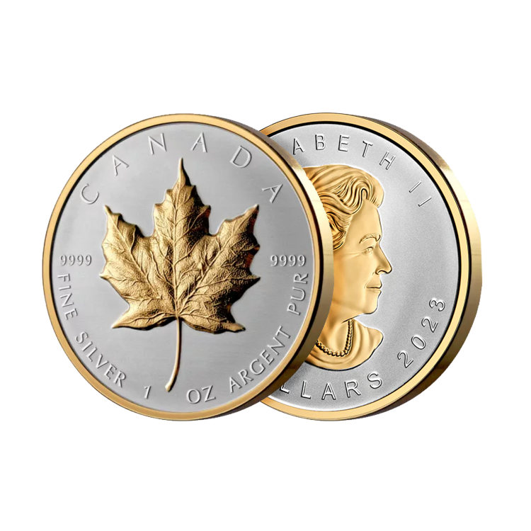 The Silver Maple Leaf series was introduced by the Royal Canadian Mint (RCM) in 1988, featuring a nationally themed design borrowed from the Gold Maple Leaf series. The late Walter Ott (1920-2020) created the created the cherished maple leaf graphic in 1979, while employed as the Master Engraver and Director of Art of the RCM. Seeking a modernized twist to the long running series, the RCM tasked its own former Senior Engraver Susan Taylor with modifying the iconic design to be suitable for minting in ultra high relief. The Ultra High Relief Silver Maple Leaf series, with an image that extends to a height of 1.4 mm beyond the coin's surface, was first released in 2022. The limited mintage 2023 version of the coin boasts a reverse proof finish, with its rim, edge and design elements plated with contrasting gold plating.